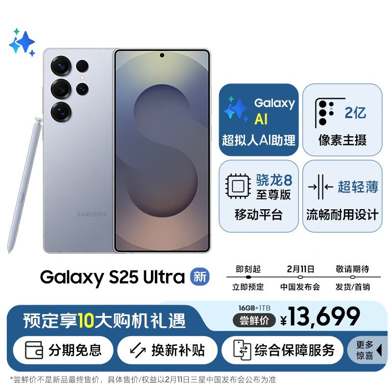 三星Galaxy S25 Ultra:2亿像素AI摄影+全球翻译,16TB内存游戏旗舰,13699元起售