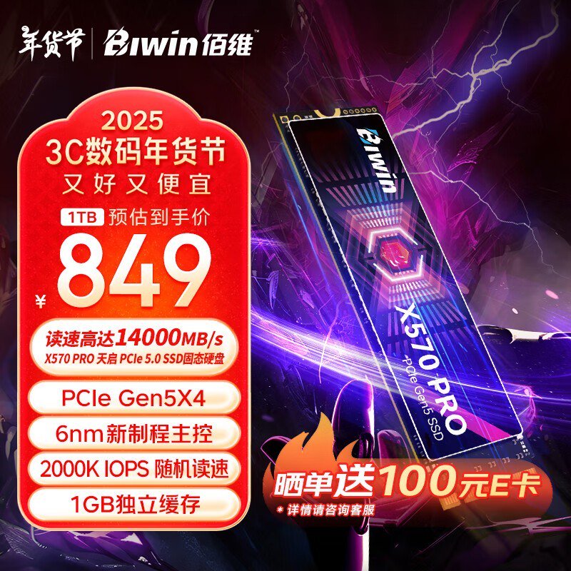 极致速度与大容量:佰维1TB PCIe 5.0 SSD,电竞创作者的性能加速器(849元起)