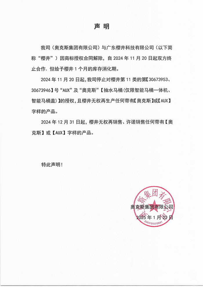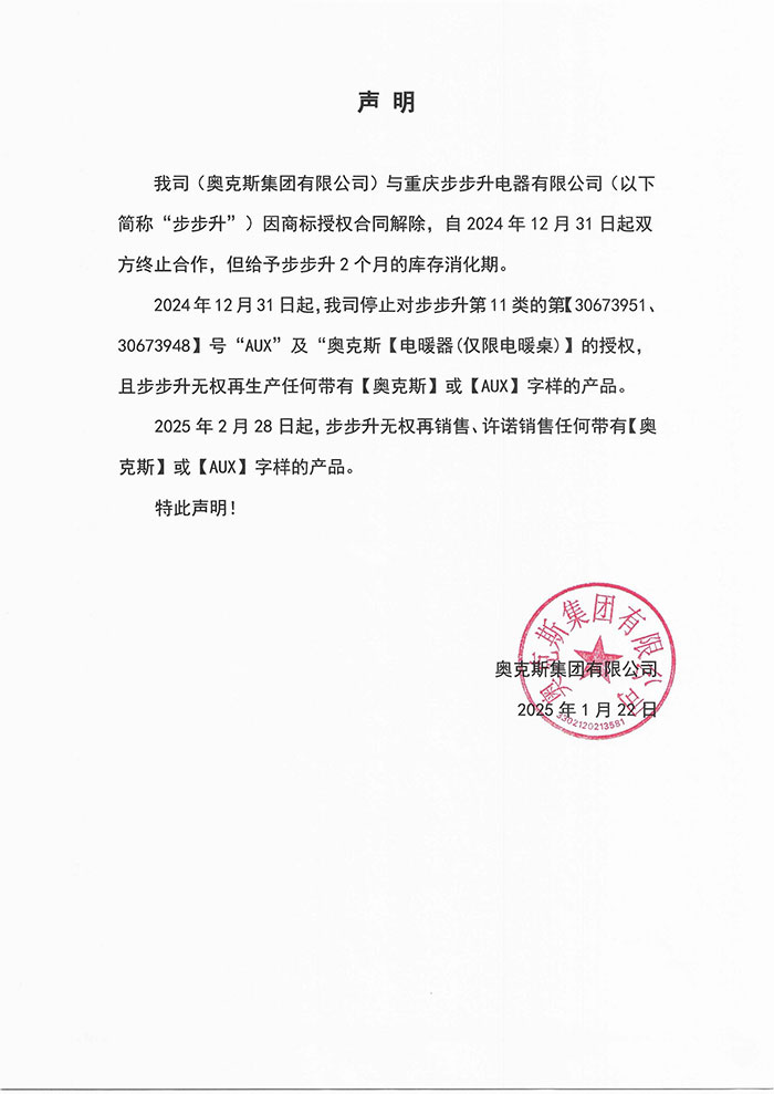 奥克斯集团发布声明
