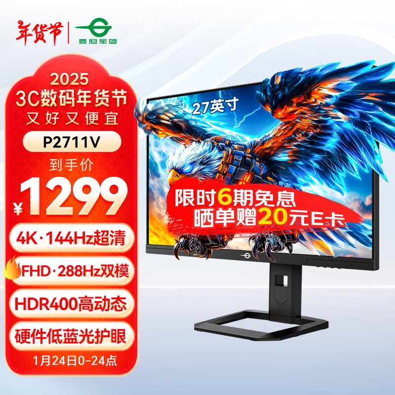 泰坦军团P2711V显示器仅需1279元!