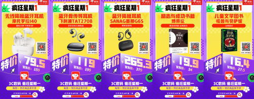 如果想低价入手3C数码和文具、图书,可以每周一来京东APP搜索“1”进入“疯狂星期一”活动会场,海量爆款产品都有限时优惠折扣,不但价格便宜品质也有保障。