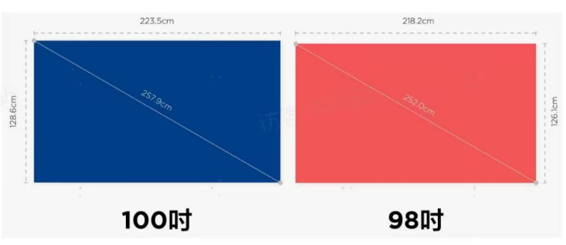 都知道电视买大不买小。在大屏、巨幕流行的当下,百吋电视已经成为越来越多人的选择。相信细心的朋友已经发现,大约几年前,市面上的大屏电视基本上都是98吋,100吋产品很少看到,而现在,100吋的电视已经基本取代98吋,在电视卖场中已经随处可见。从98吋到100吋,在外行人看来仅仅是尺寸增加了2吋。但内行人应该都懂,这2吋的小升级,其实是整个电视行业的一大步。