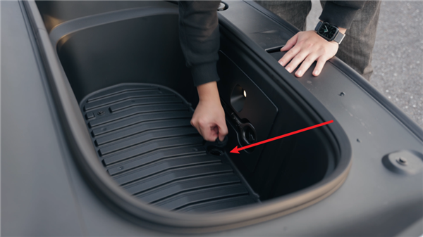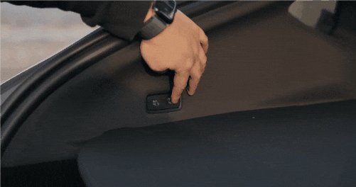 同时后备厢里,也换成了电调放倒按钮,可以做到悬停,而且如果前后排冲突的话,前排会自动避让一下。