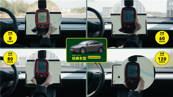 我们的实测数据是,车速 60km/h ,新 Y 是 55dB 左右,老 Y 是 61dB 左右;车速 80km/h ,新 Y 是 58dB 左右,老 Y 是 62dB 左右;车速 120km/ ,新 Y 是 65dB 左右,老 Y 是 68dB 左右。
