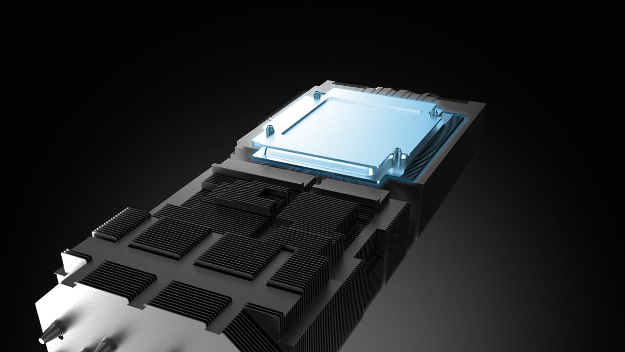 此外,索泰GeForceRTX 5090 D SOLIDOC还拥有一块超大面积VC均热板,能够完整覆盖GPU核心。均热板表面做了镀镍和镜面抛光处理,配合背部的GPU固定支架,使得均热板与核心贴合更紧密,导热更均匀高效。