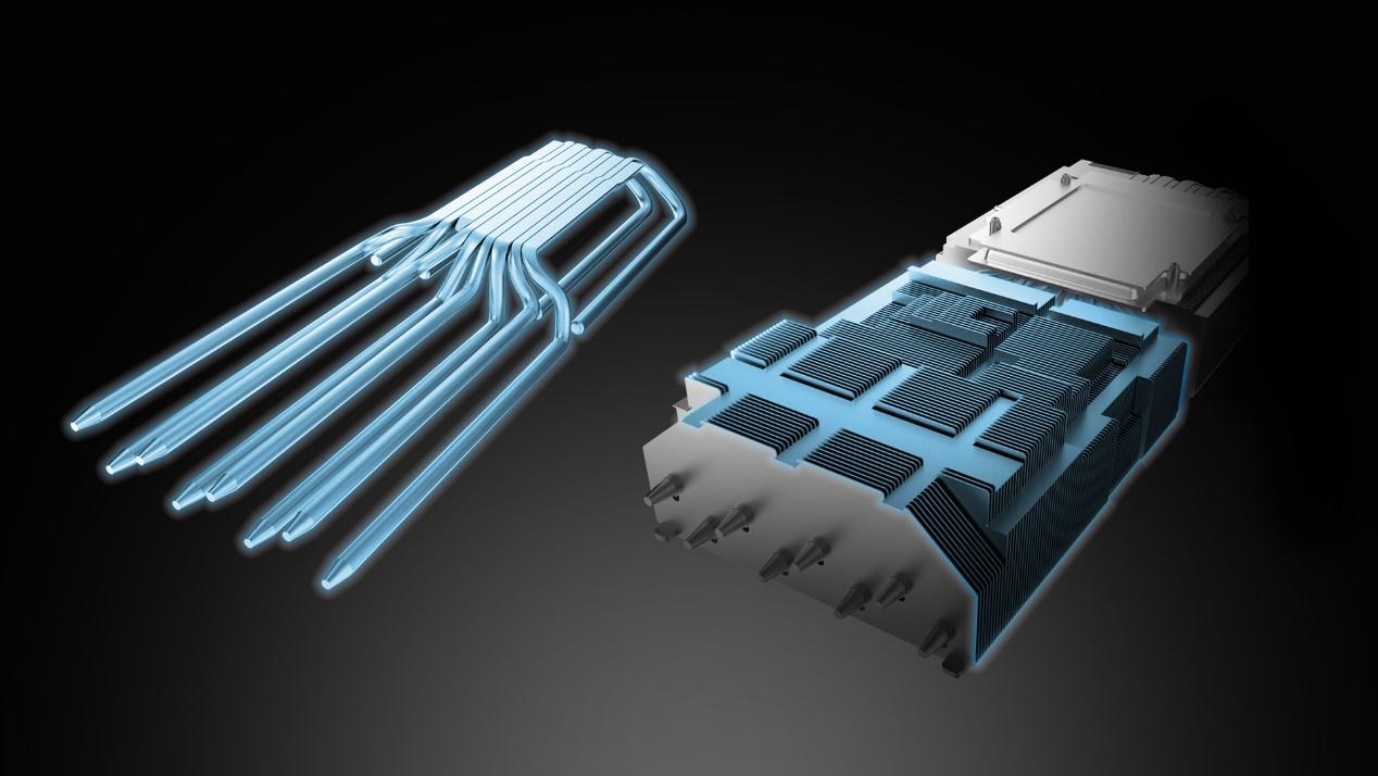 索泰GeForceRTX 5090 D SOLIDOC升级加高加长合金鳍片,热管也升级为加厚、高导热复合镀镍热管、更高导系数的导热介质,增加热管内壁脉络状导液沟槽密度,加大冷凝液与热管内壁接触面积,加快冷凝液导热循环。