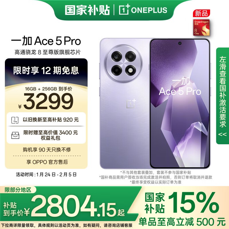 京东大促!一加 Ace 5 Pro 5G手机低至2804元,限时抢购中