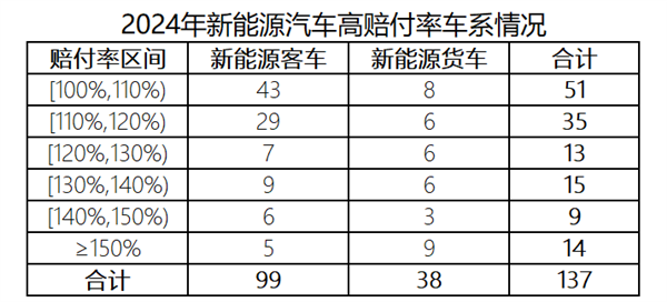 保险业共承保车系 2795个,其中赔付率超过100%(尚未考虑财险公司日常经营管理费用成本)的高赔付车系有137个。