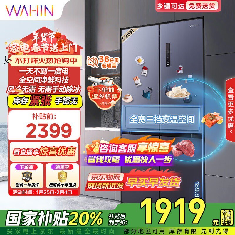 华凌 美的551十字对开冰箱 家庭必备好物 限时优惠