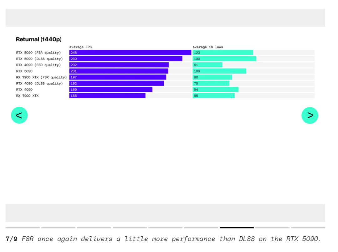 最令人失望的是《刺客信条:幻影》,RTX 5090 仅比 RTX 4090 提升了 8% 的性能。
