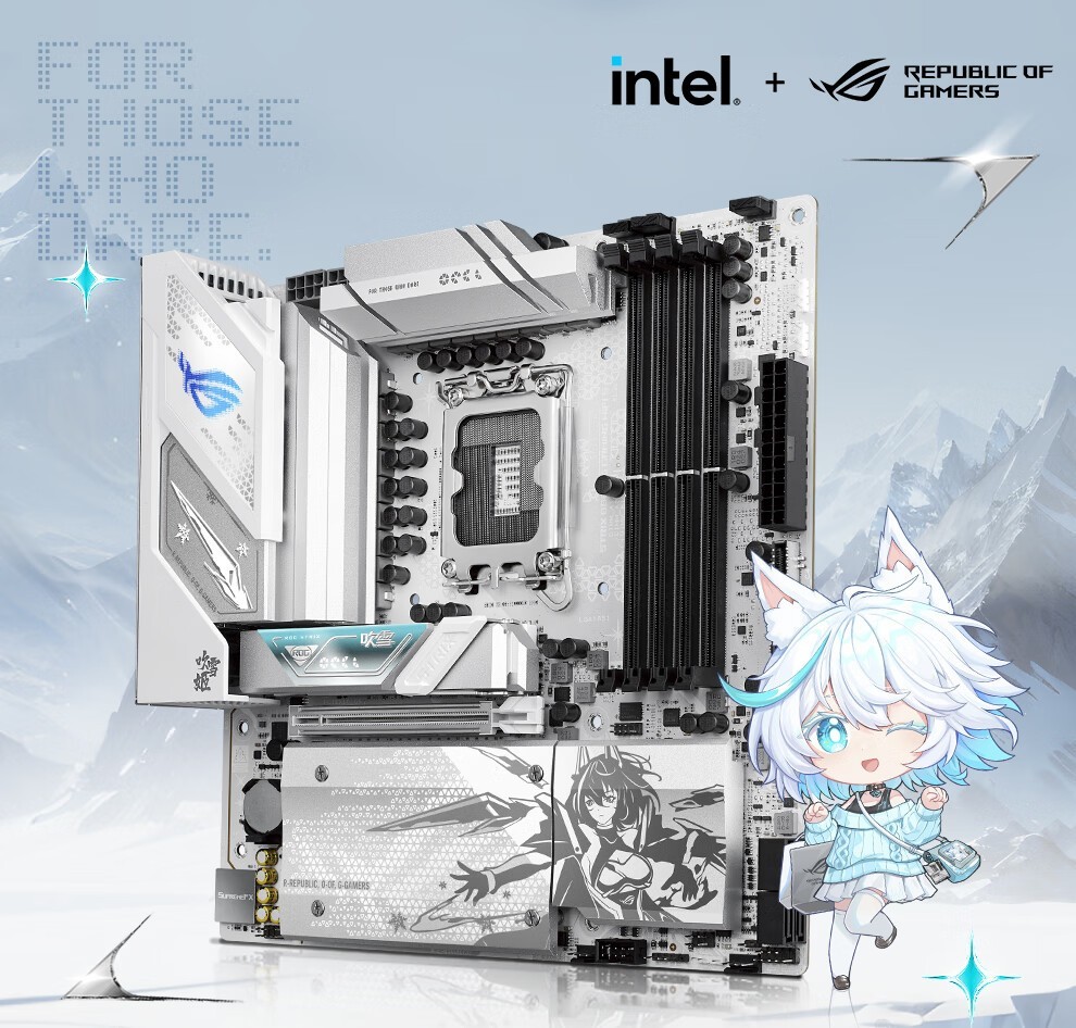 颜值即正义,华硕B860小吹雪主板大面积银白散热装甲搭配雪武战姬身影,更有多项电竞优化技术加持,是酷睿Ultra200S处理器的完美搭档。主板现已在京东平台开售,售价1599元,享6期免息,晒单还送100元E卡,心动不如行动,各位玩家及时抢购!抢购链接:https://item.jd.com/100168281560.html