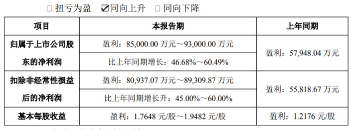 1月24日,江苏雅克科技股份有限公司 发布2024年年度业绩预告。预计2024年实现归母净利润盈利85,000.00 万元~93,000.00 万元,比上年同期增长46.68%~60.49%。实现扣非净利润盈利80,937.07 万元~89,309.87 万元,比上年同期增长升45.00%~60.00%。基本每股收益盈利1.7648 元/股~1.9482 元/股。