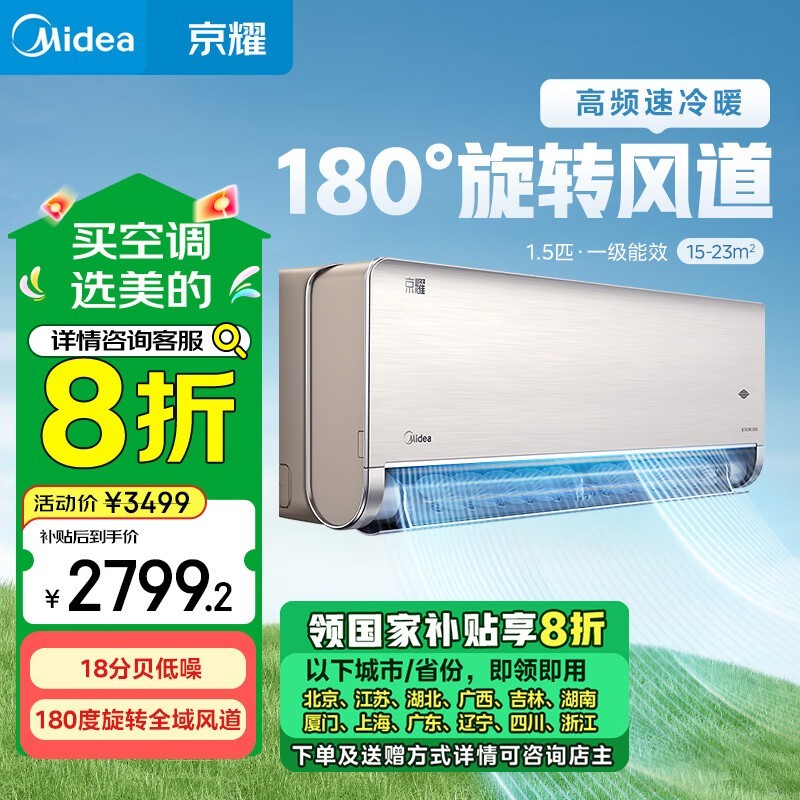 美的1.5匹京耀变频空调2799元到手