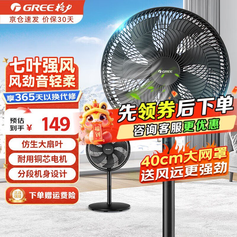 格力落地扇133元带回家!性能稳定、易于操作