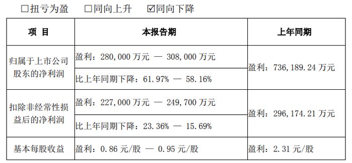 报告期内,在国内外诸多因素影响下,公司仍坚持精细化管理和高质量发展的经营理念,全力推动公司高质量发展。公司 2024 年较 2023 年业绩变化的主要原因是 2023 年公司处置了对浙江零跑科技股份有限公司持有的 7.88%股份,增加 2023年归属于母公司净利润 41.37 亿,此项收益均为非经常性损益。