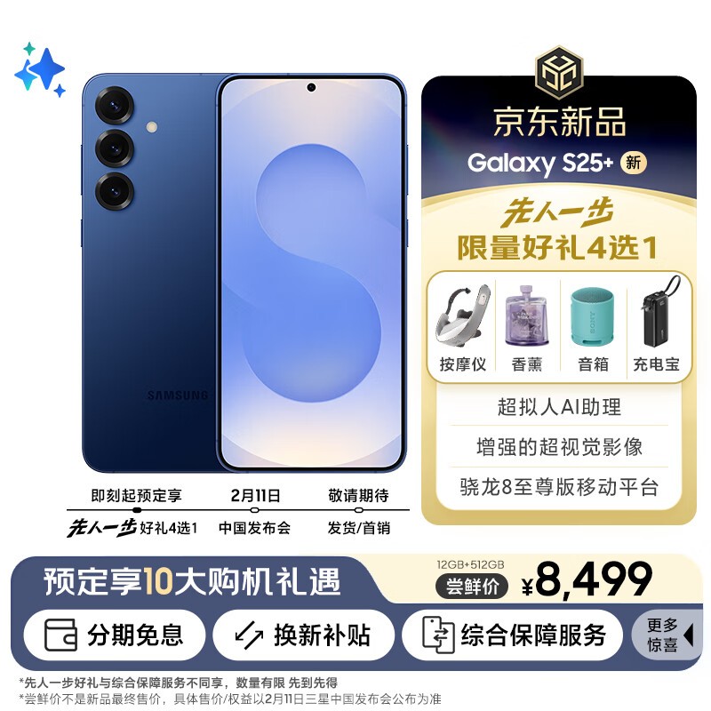 三星Galaxy S25+:超AI智能旗舰,骁龙8至尊版玩转游戏摄影,8499元起预购享综合保障