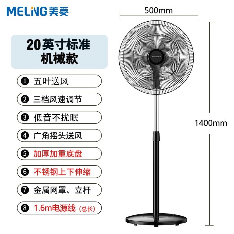 美菱20寸落地扇限时优惠139元
