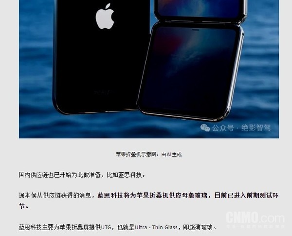 曝蓝思科技将为苹果折叠机供应母版玻璃 2026年发布