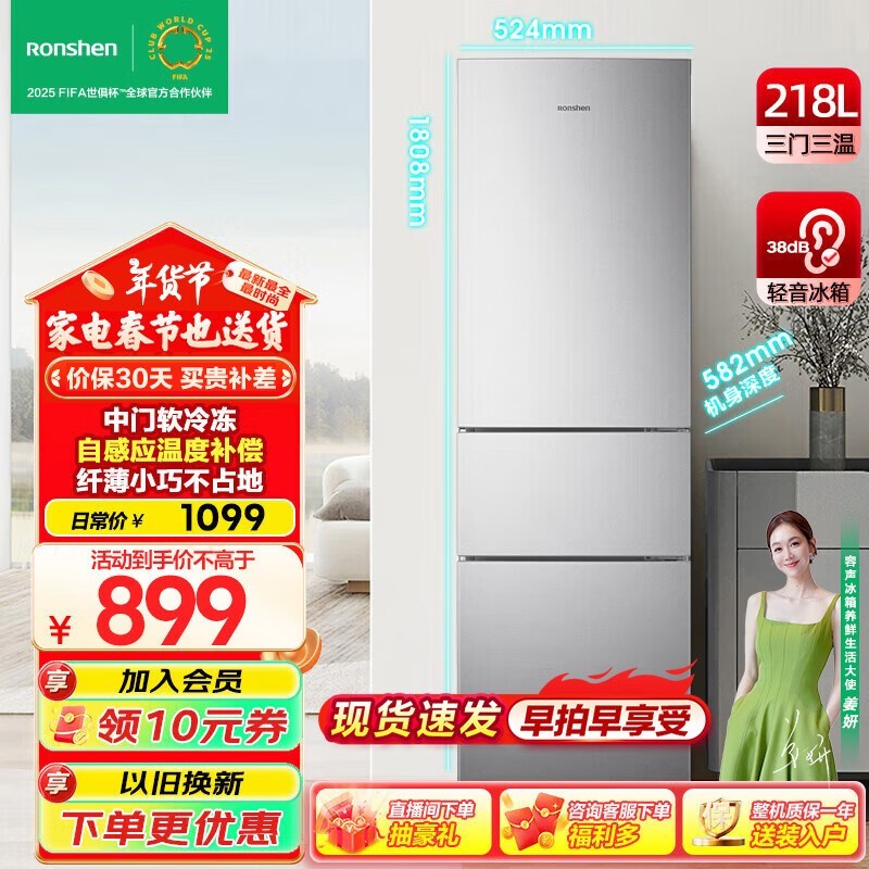 容声 BCD-218D11N 直冷三门冰箱仅售699元!