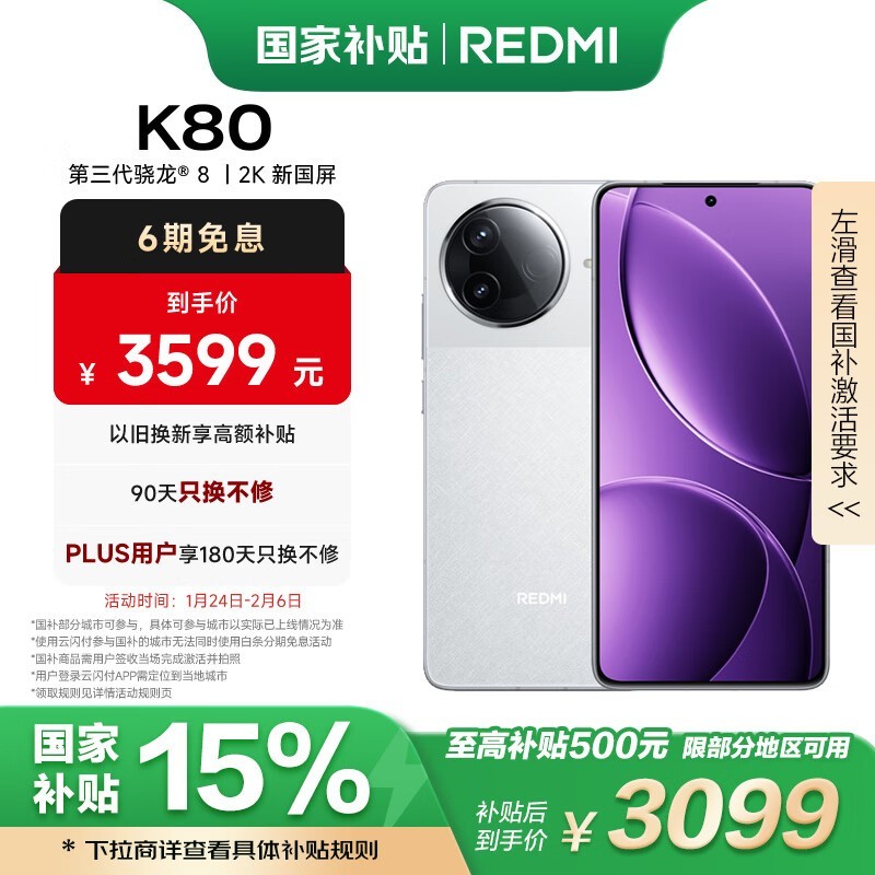 红米K80 5G手机京东活动价3079元