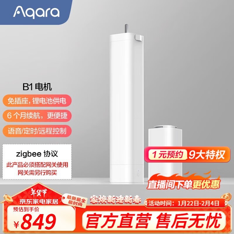 Aqara智能窗帘电机锂电池版仅售839元