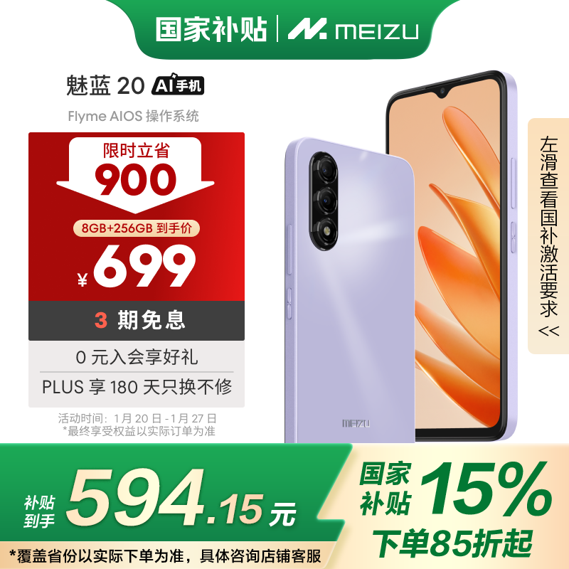 魅族MEIZU 魅蓝20 AI手机低至574元