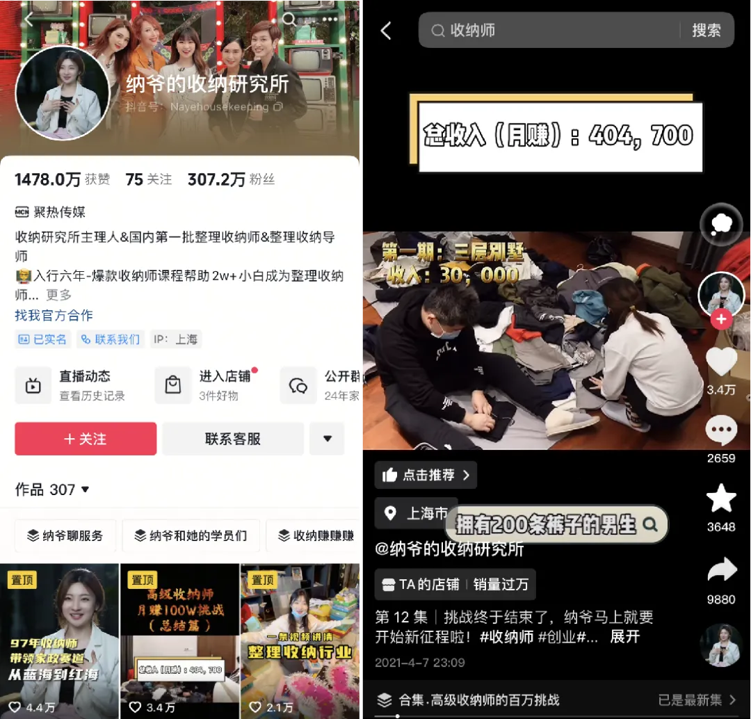 纳爷的收纳研究所,曾凭借“月赚百万挑战”视频起势