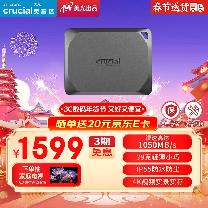 Crucial X9 Pro移动固态硬盘优惠仅需1500元 限时抢购中!