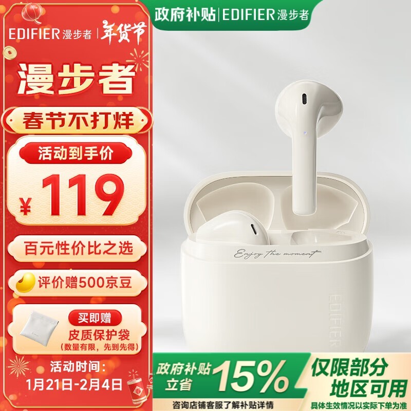 漫步者 Zero Air无线蓝牙耳机,到手价81.72元!