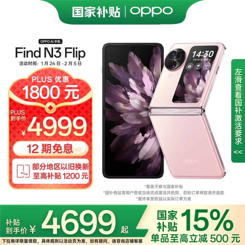 OPPO Find N3 Flip 5G折叠屏手机仅4453元!