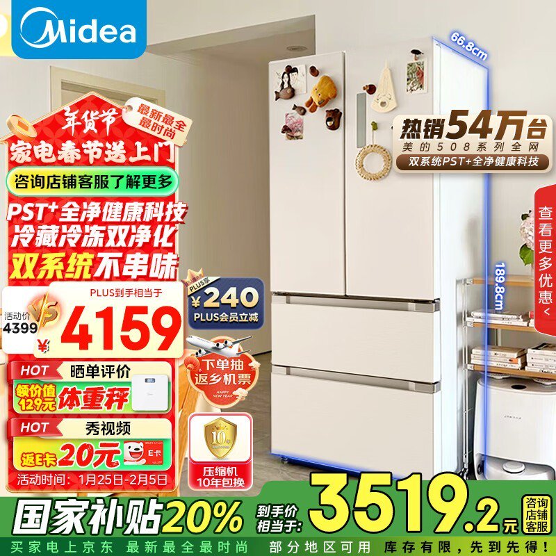 美的BCD-508WTPZM(E)冰箱大促销 到手价3312.16
