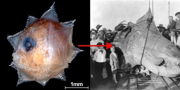 值得一提的是,这么庞大的身体,是从体重不到1克,体长2.5毫米的小鱼长成的,它的生长速度之快,被科学家誉为是脊椎动物中“体型增长最极端”的动物。