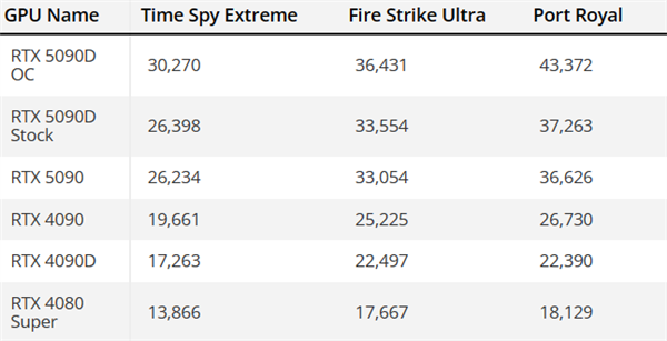对比来看,极限超频的RTX 5090D,跑分已经超过两块RTX 3090 Ti,击败四块GTX 1080 Ti!