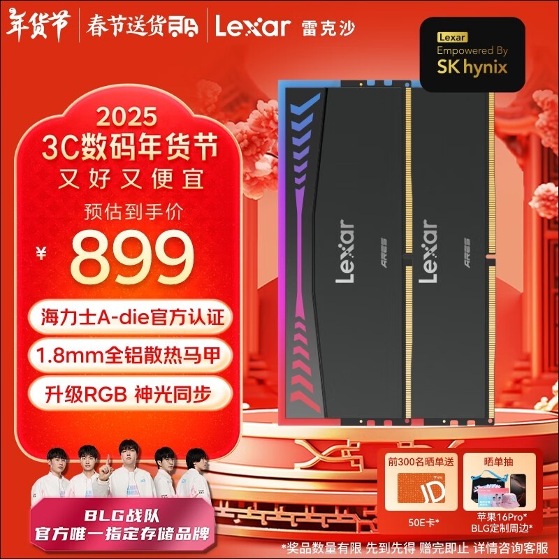 雷克沙 DDR5 8000 32GB内存条889元抢购