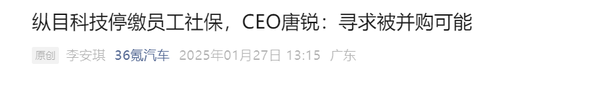 又一汽车领域公司暴雷 纵目停缴员工社保 寻求被并购