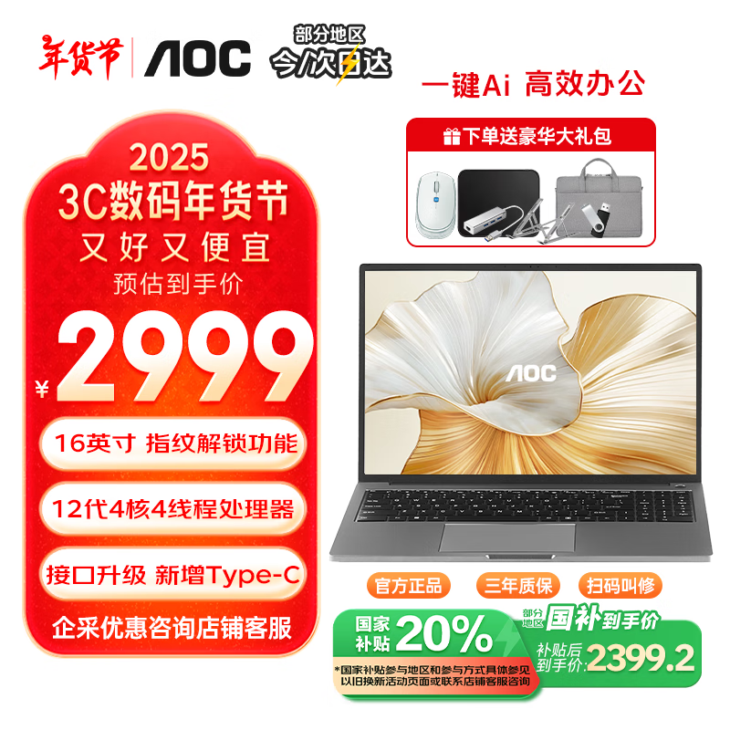 AOC 24玄青遇见系列笔记本电脑到手价2399元