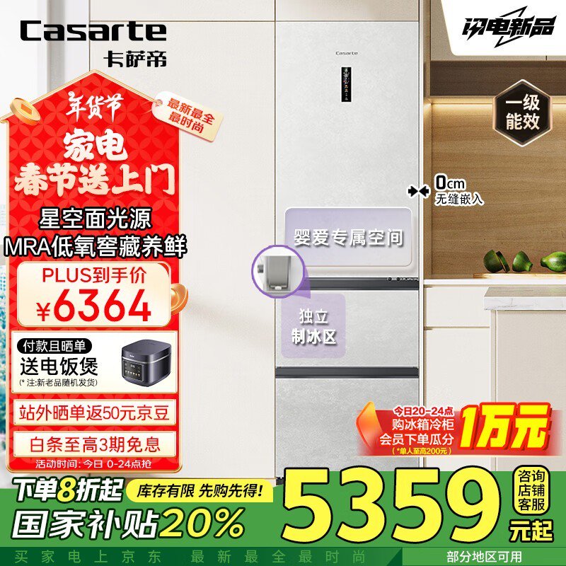 卡萨帝超薄零嵌入式冰箱,到手价6029元,快来抢购吧!