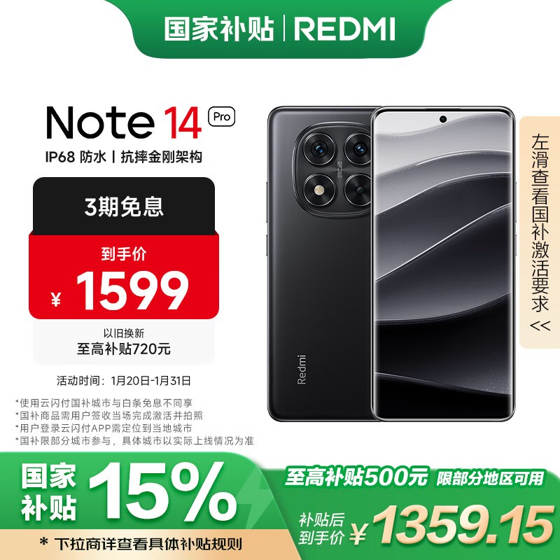 红米Note 14 Pro手机价格直降300元,限时抢购中