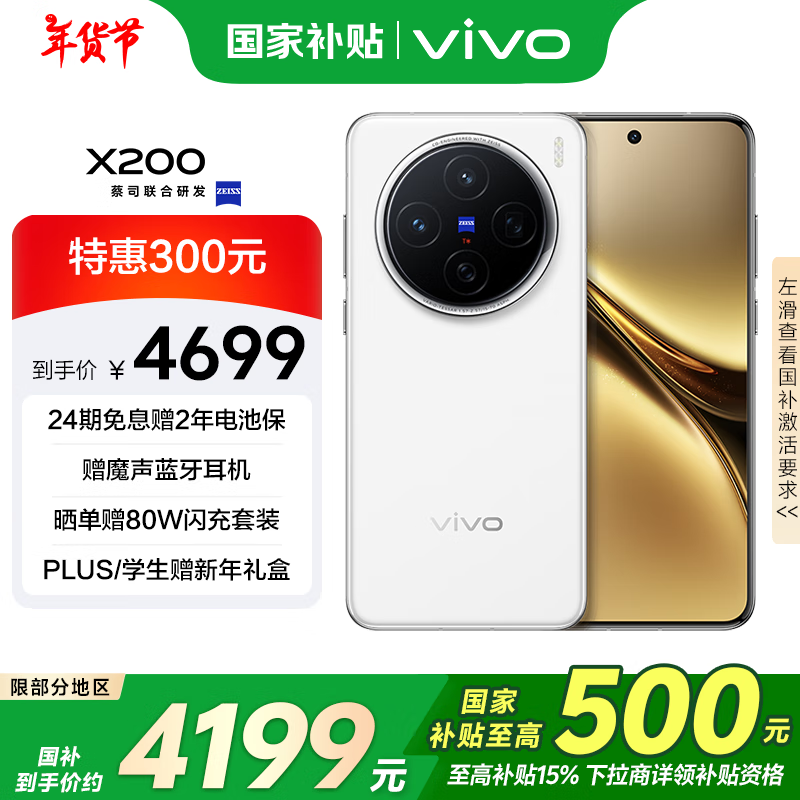 vivo X200 5G手机 16GB+512GB 白月光