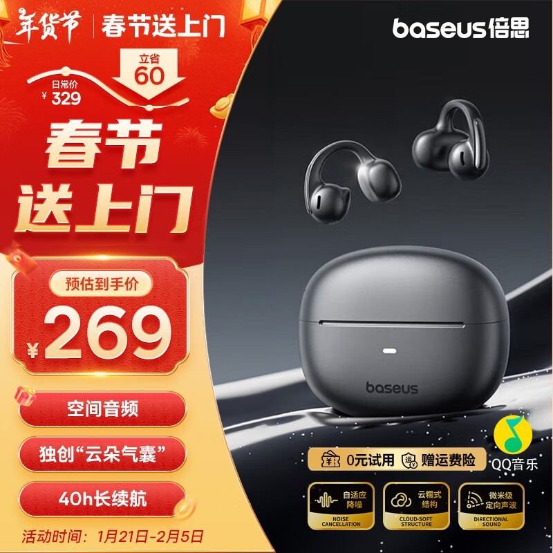 倍思 MC1小云朵骨传导蓝牙耳机优惠218元 运动必备神器