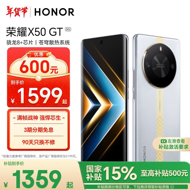 荣耀 X50 GT手机优惠1233元!