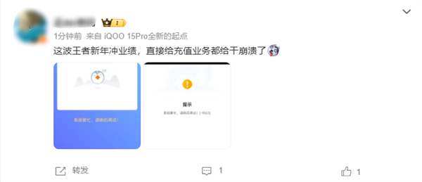 快科技1月28日消息,今天零点,《王者荣耀》蛇年限定皮肤正式上架,由于上架瞬间有大量玩家充值购买,导致《王者荣耀》充值系统被“挤崩”,部分活动出现异常。