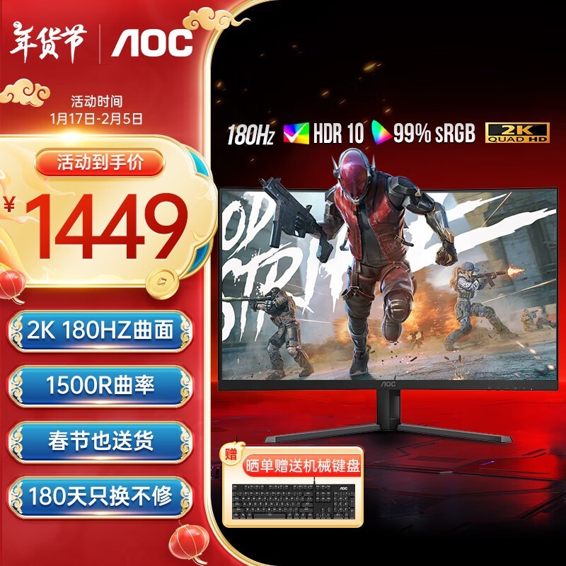 AOC CQ32G4E显示器1449元到手 限时优惠抢购中!