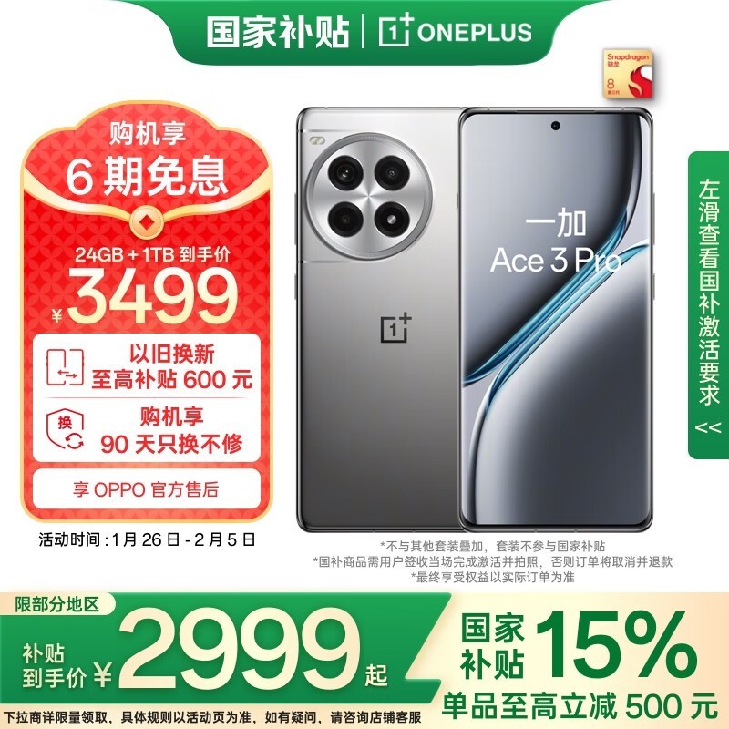 一加Ace 3 Pro手机2928元入手 狂降700元!
