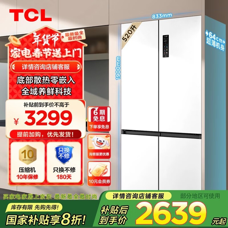 TCL超薄零嵌系列冰箱3289元 家庭必备