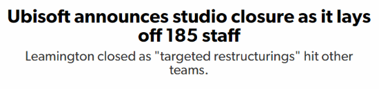 育碧发言人表示:“作为我们持续优化项目、降低成本以确保公司长期稳定的努力的一部分,我们宣布对育碧杜塞尔多夫、育碧斯德哥尔摩和育碧Reflections进行有针对性的重组,并永久关闭育碧莱明顿工作室。”