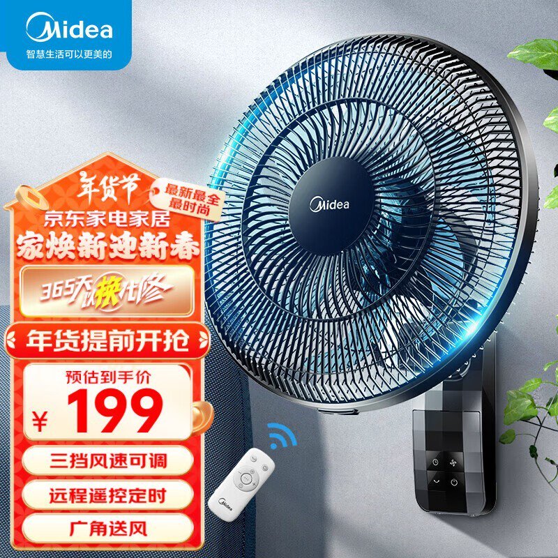 美的七叶遥控壁扇FWA35WAR,高性能静音风扇仅需179元