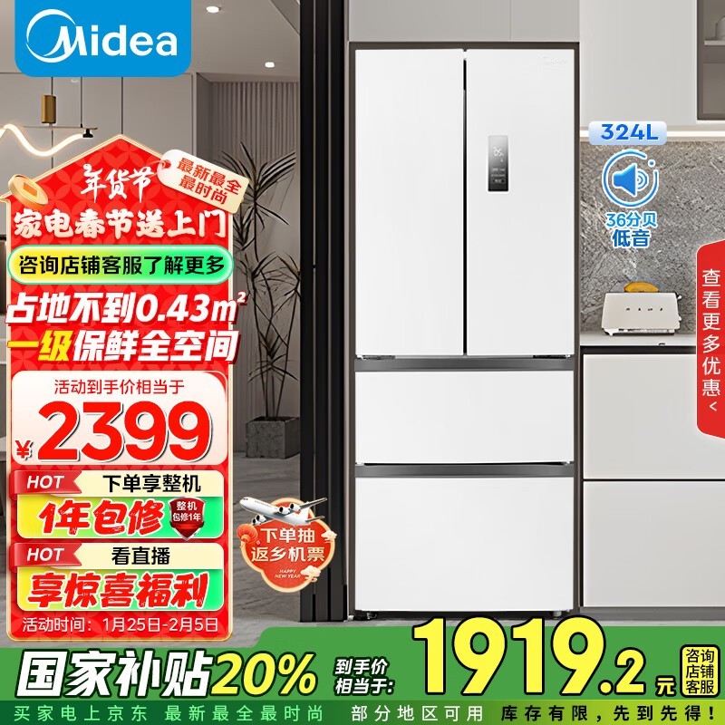 美的Midea MR-340WFPE风冷多门冰箱优惠1811元