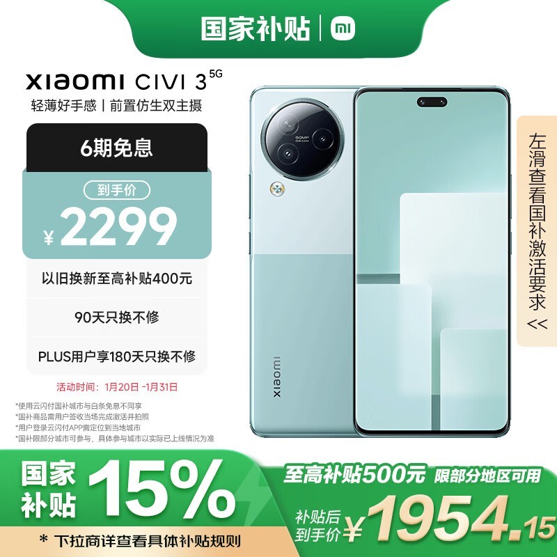 小米Civi 3手机超强优惠!到手价1927元