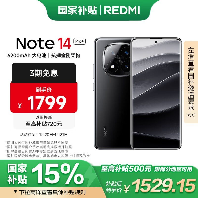 红米手机限时立减15%,到手价1504元!
